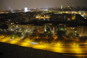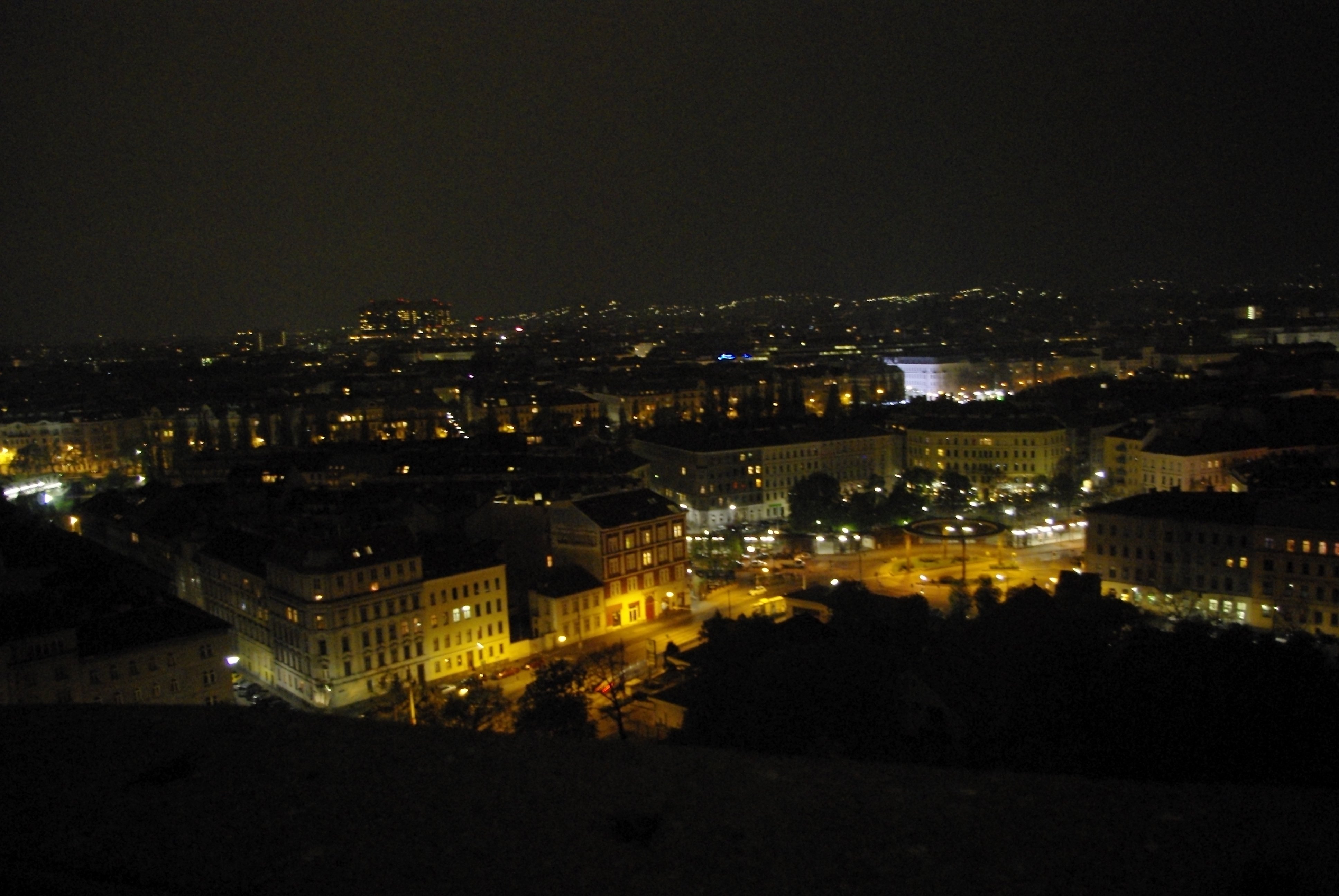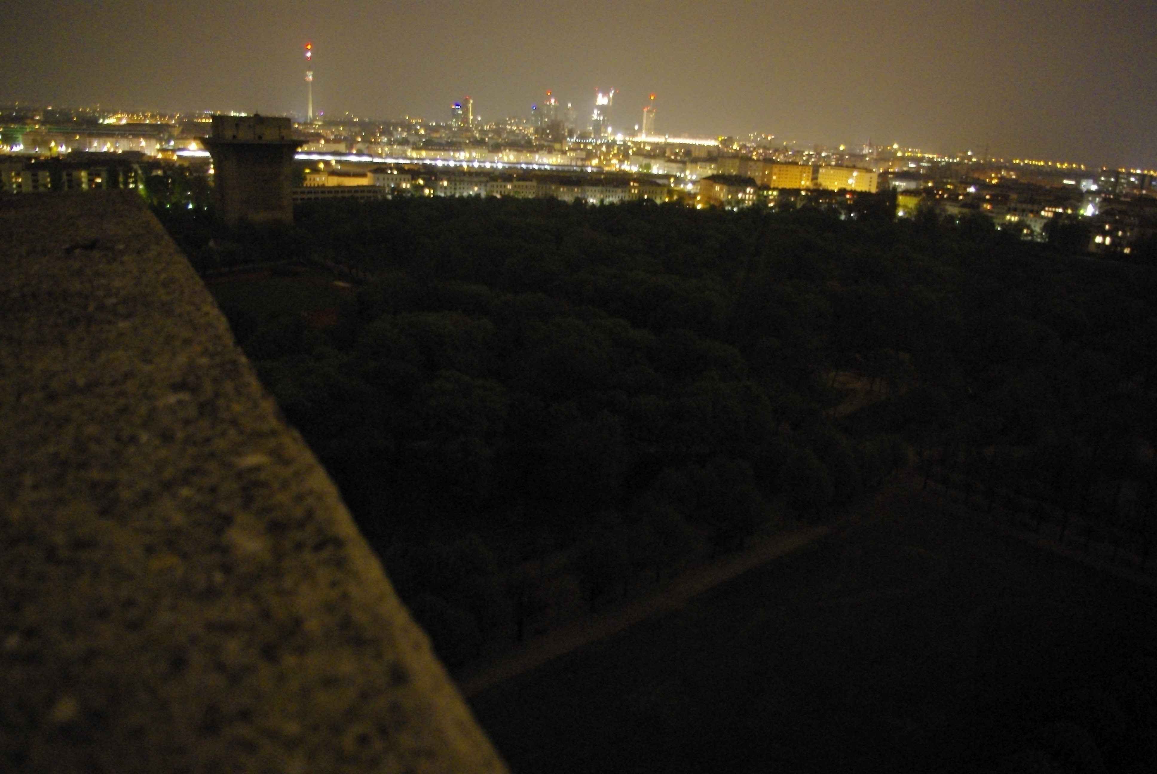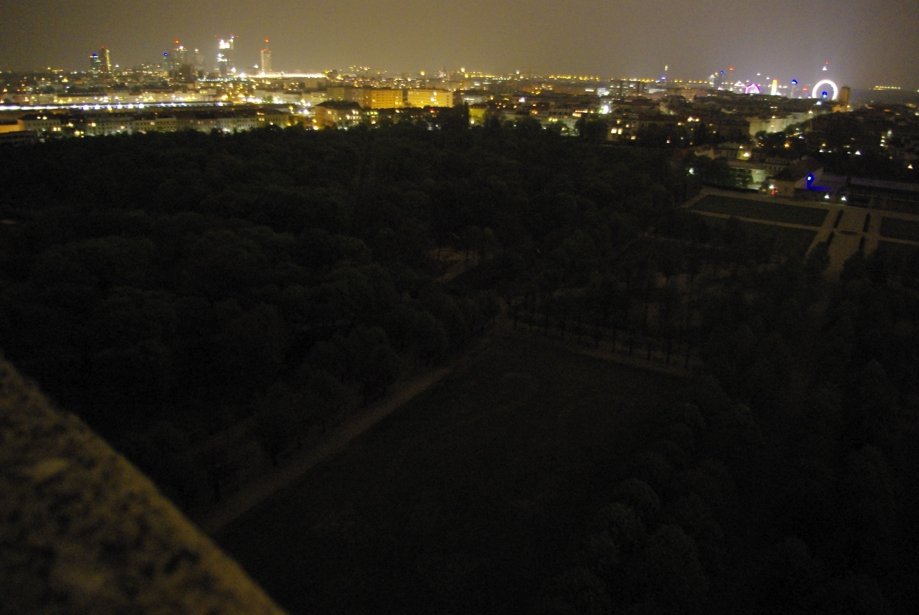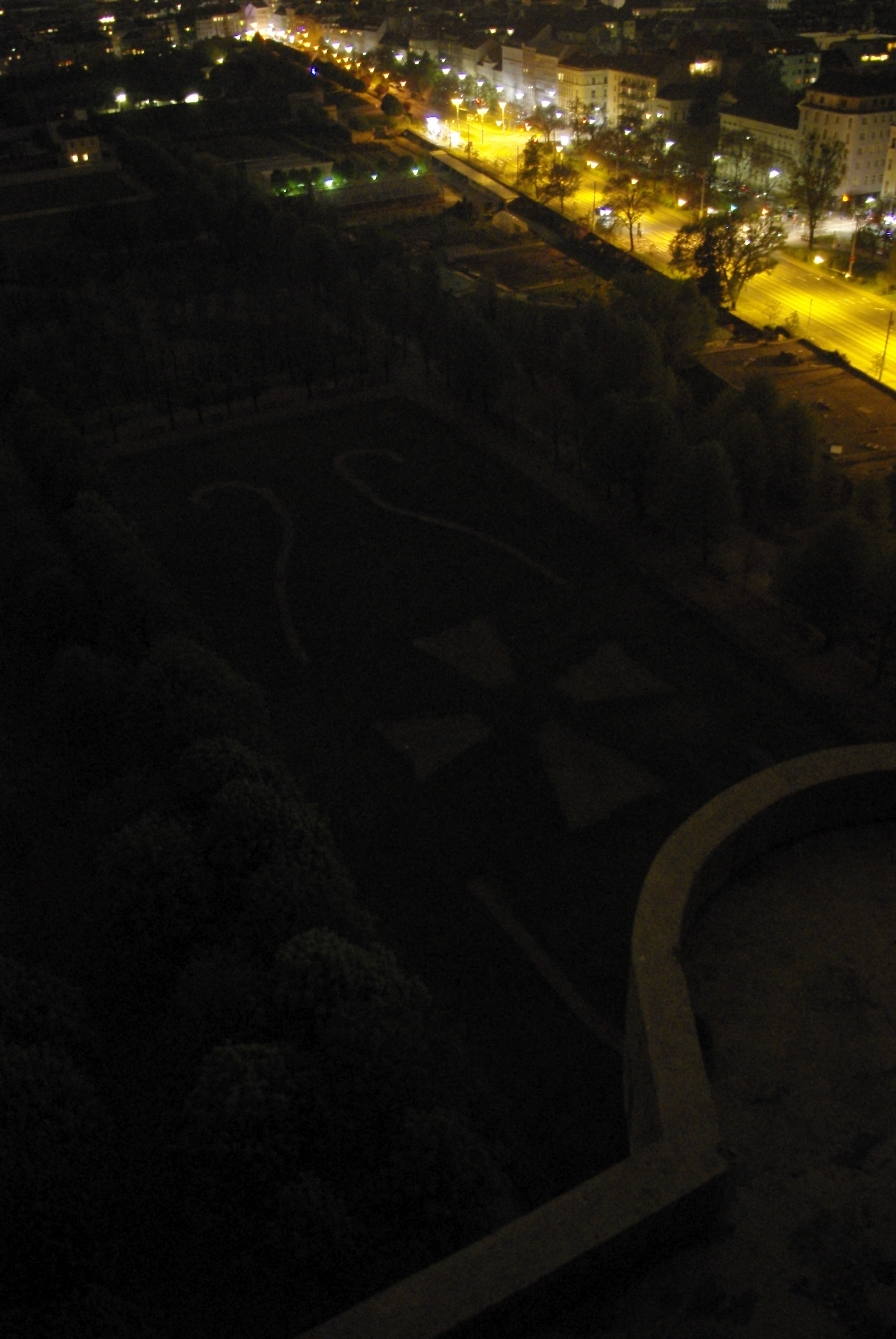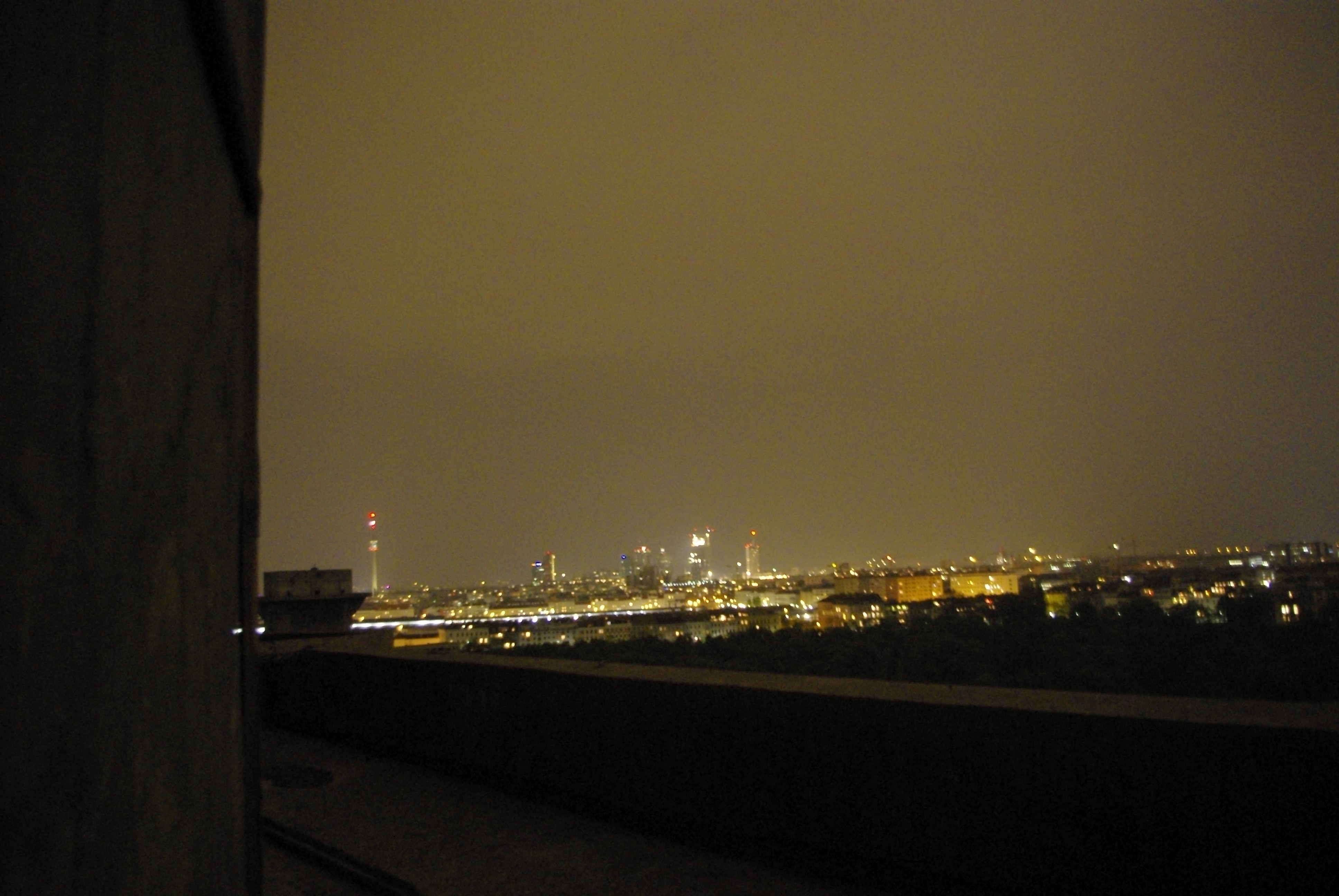 Aussicht vom großen runden Flakturm im Augarten, den eine korrupte Verwaltung verfallen läßt, obwohl er so gut konstruktiv genutzt und in etwas Positives umgewandelt werden könnte.